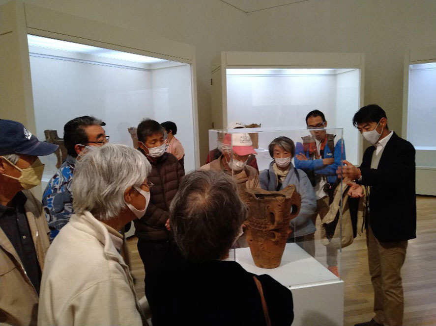 いろいろ企画第4弾として11月5日、山梨県立美術館で開催されていた「縄文展」を北杜市埋蔵文化財センターに長く勤務された佐野さんの解説付きで見学に行きました。当日は30名ほどが集まり、いつもの作業の時とは大きな違いに企画した側もビックリ!