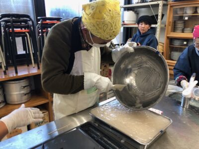 今年のこんにゃく作りは、会員さんからのこんにゃく芋の寄付があり、その芋を使わせていただきました。 こんにゃく芋はとても固く茹でる時間もかかりました。ミキサーでのお湯の分量、こんにゃくの素を入れてから固まっていくまでは不安 […]
