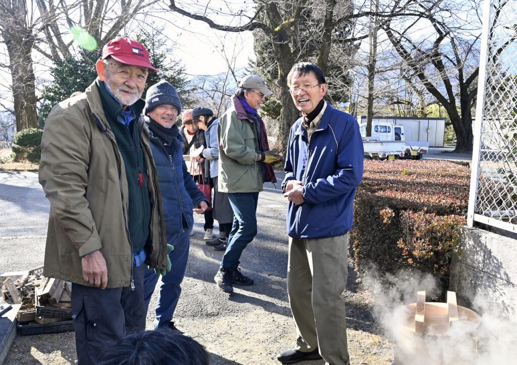 談話室の行事として1月14日恒例の新春餅つき大会が旧日野春学舎で開催されました。