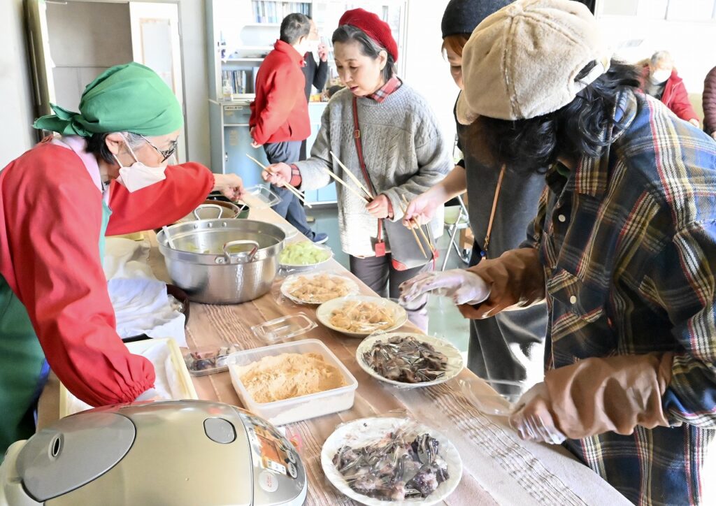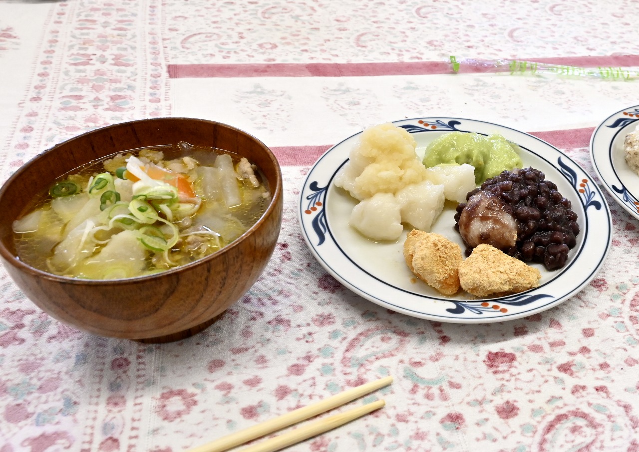 お餅のトッピングには、きなこ・ズンダ・あんこ・クルミ・大根おろしが調理され仕上がったお餅と一緒に豚汁も添えて皆さん終始和やかな会話とともに美味しくいただく事が出来ました。