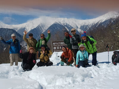 「絶景の夜叉神峠雪山ハイキング、総勢10人で楽しく」山の会